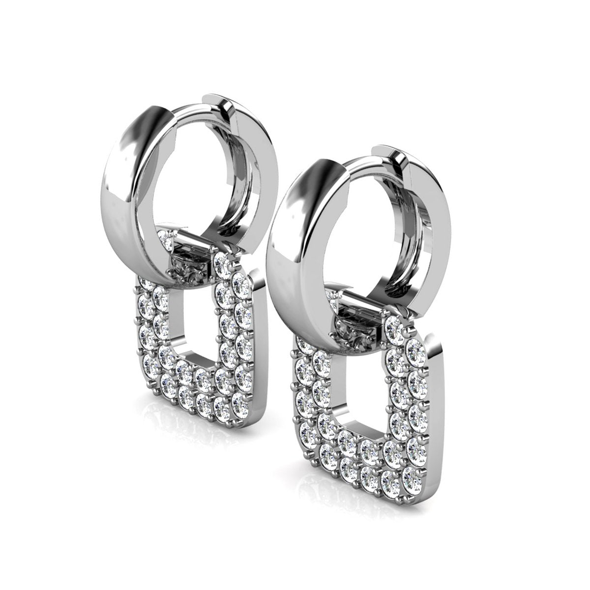 Klassieke vierkante gerhodineerd zilveren oorbellen van hoogwaardig messing en Oostenrijks kristal