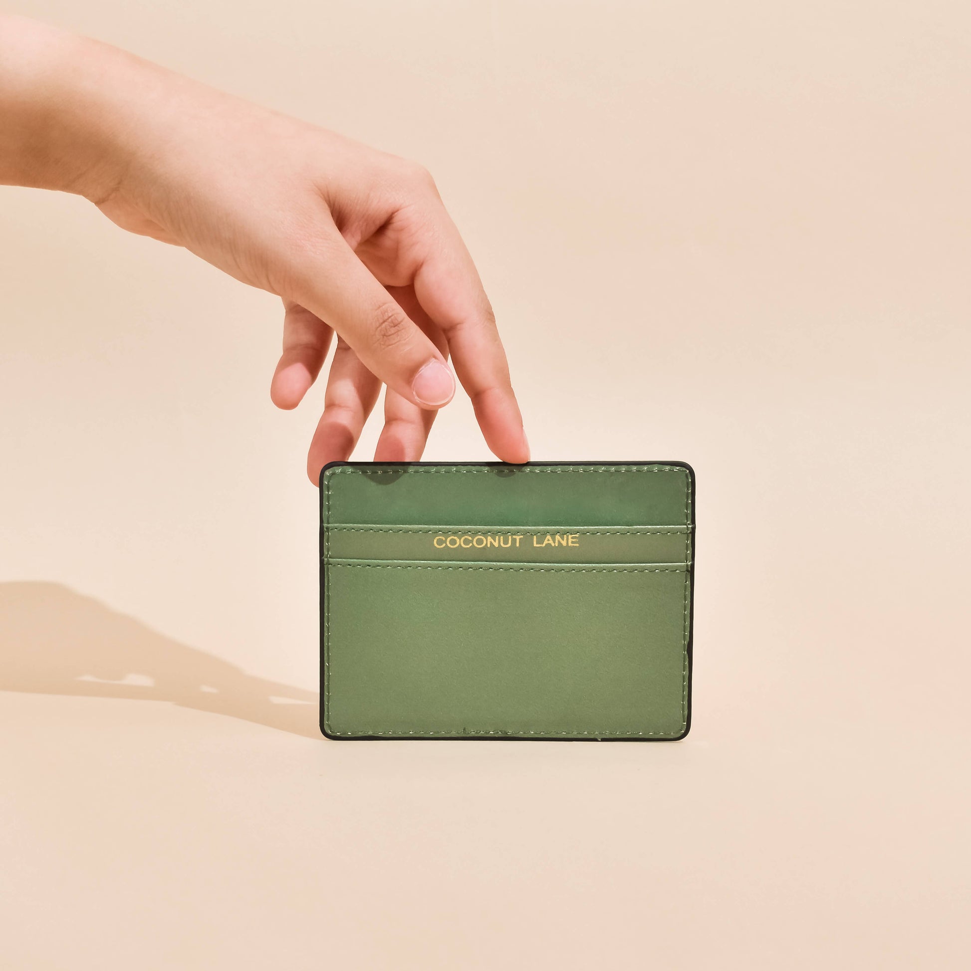 Dit is de perfecte kaarthouder voor jou - de dromerigste nude-tint met eenvoudig goudfolie-logo.