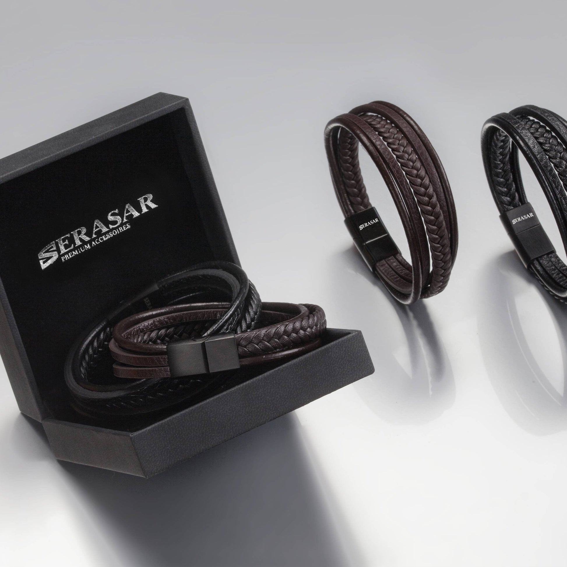 SERASAR, leren armband "Braid" voor heren